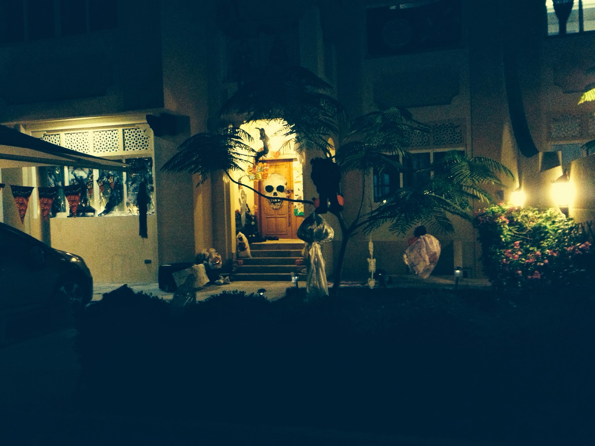 After the walk, Jo and Flossie picked us up and we headed home for some trick or treating. It seems to have been a fairly big event on the compound, with one of the villas in particular being well decorated.